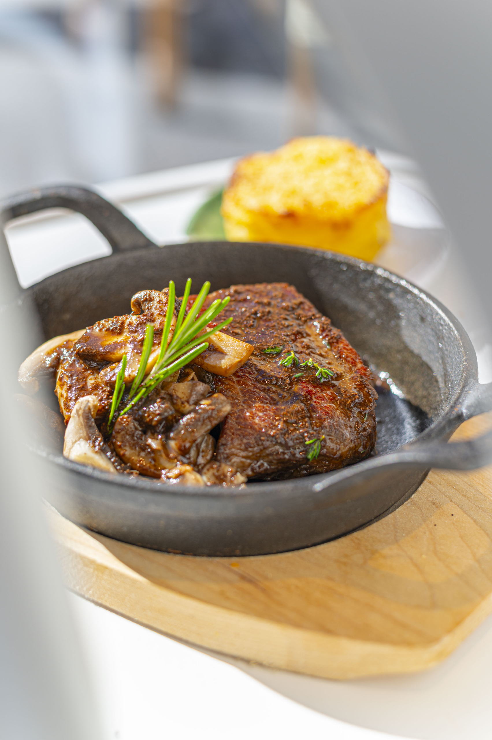Rundvlees escalope met rozemarijnsaus, paddenstoelen en nieuwe aardappelen